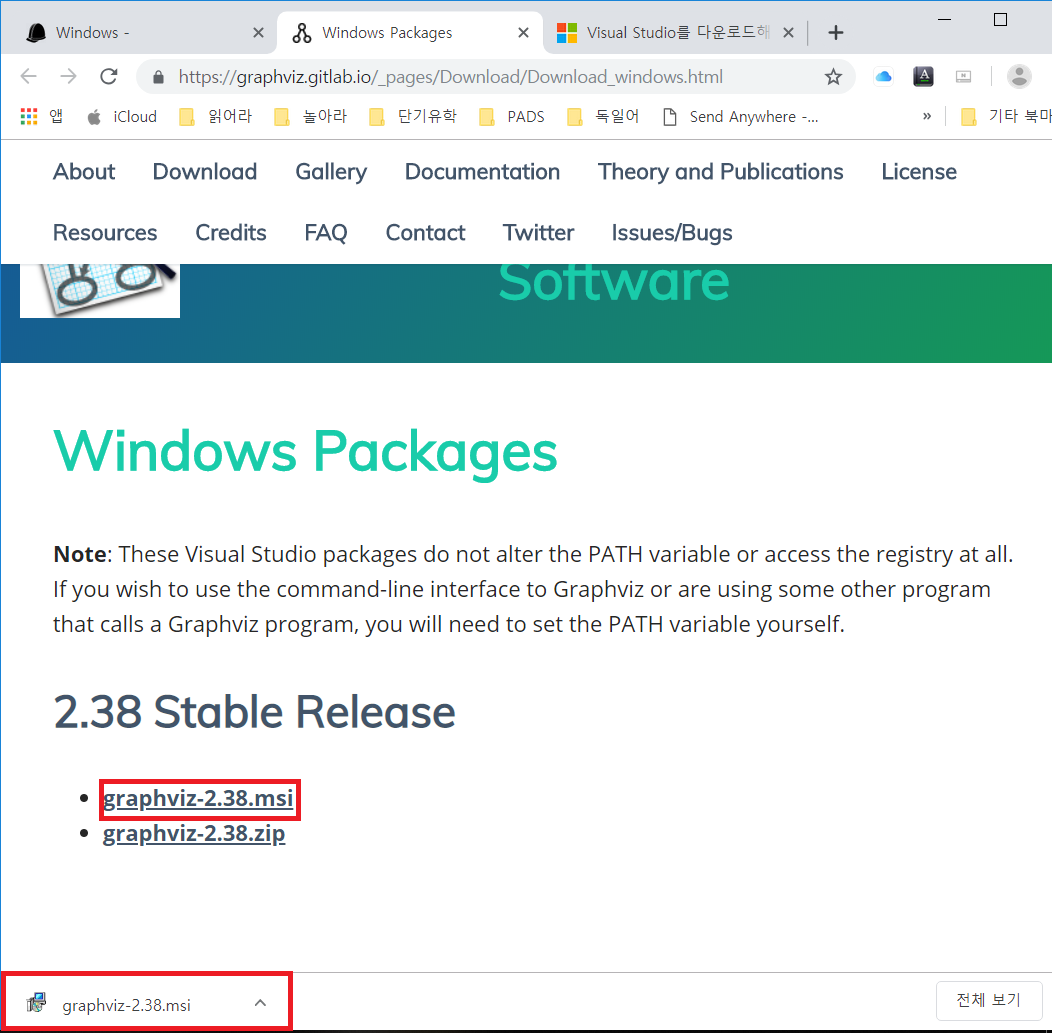 2-1. 링크를 클릭하고, graphviz-2.38.msi 버튼을 클릭한다.