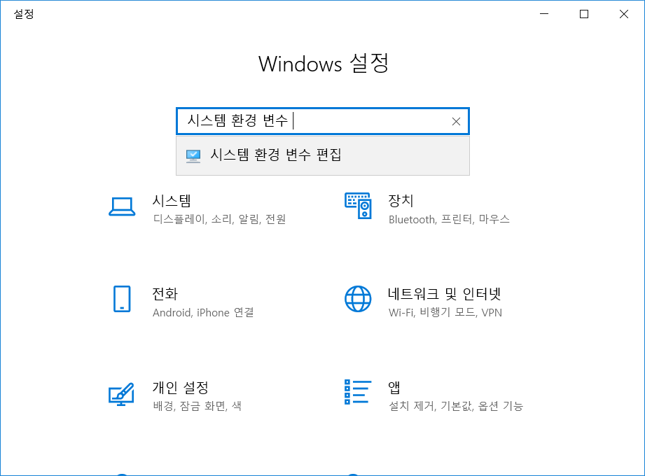 3-1. Windows 설정에 들어가 시스템 환경 변수 편집에 들어간다.