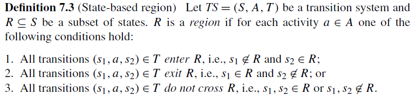 State Based Region Theory에서 state는 트랜지션 시스템의 state일 것이고, based와 theory는 알고 있고, region은 무엇일까? Region은 다음과 같이 정의할 수 있다.
