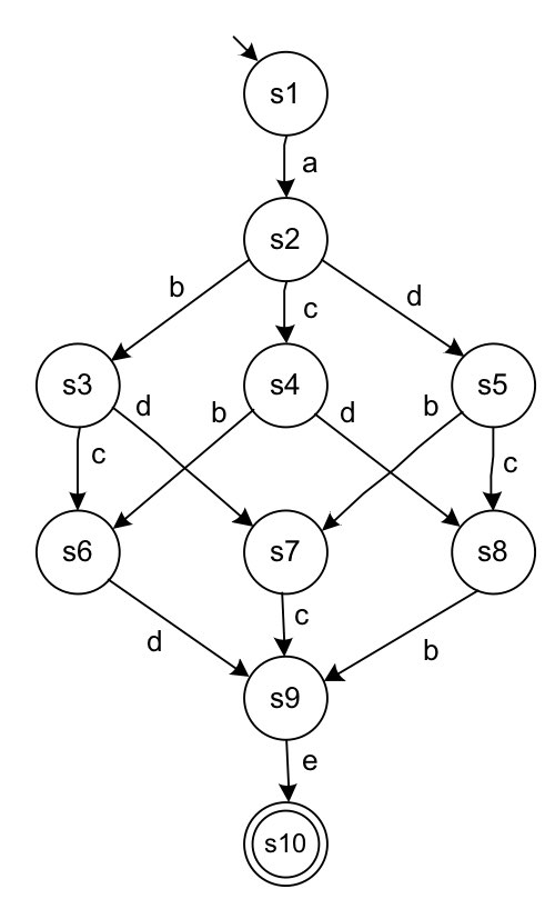 a, b, c, d, e 트랜지션을 각각 살펴 보자. a 트랜지션은 enter를 한다. b 트랜지션은 s2->s3 부분에서는 do not cross를 하지만, s3->s7에서는 exit를 하고 있다. b 트랜지션에 대해 두 개 이상의 관계 (do not cross, exit)를 가지기 때문에 {s2, s3, s4}는 region이 아니다.