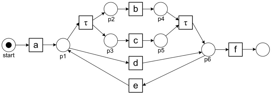위 프로세스 모델에서는 액티비티 b와 c가 concurrent하게 일어난다. 즉, 이벤트 로그 상에서 <..., b, c, ...>로 표현될 수 있지만 b와 c는 일을 전달하는 것은 아닌 것이다. 이렇게 실제 모델의 causal dependency를 고려하여 handover을 정의할 수도 있다.