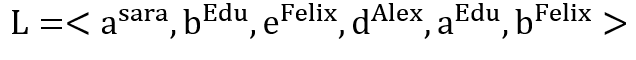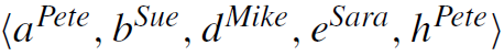Handover of work social network란 말 그대로 구성원 사이에서 일이 어떻게 전달되는지를 표현하는 social network이다. 예를 들어, 다음과 같은 이벤트 로그가 있다고 하자. 이벤트 로그 내의 각 이벤트의 아래쪽에 있는 큰 글자 (a, b, d, e, h)는 액티비티, 위에 있는 작은 글자 (Pete, Sue, Mike, Sara, Pete)는각 액티비티를 수행한 resource를 말한다.