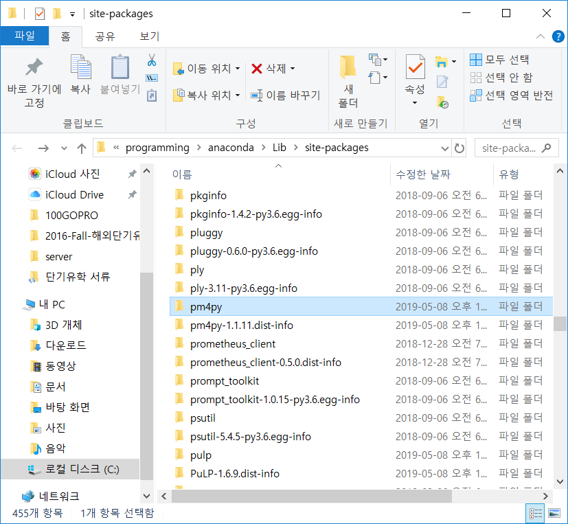 4-3. pm4py가 anaconda/Lib/site-packages에 성공적으로 설치되었음을 확인한다. 이제, 아나콘다 환경에서 pm4py library를 사용할 수 있다!