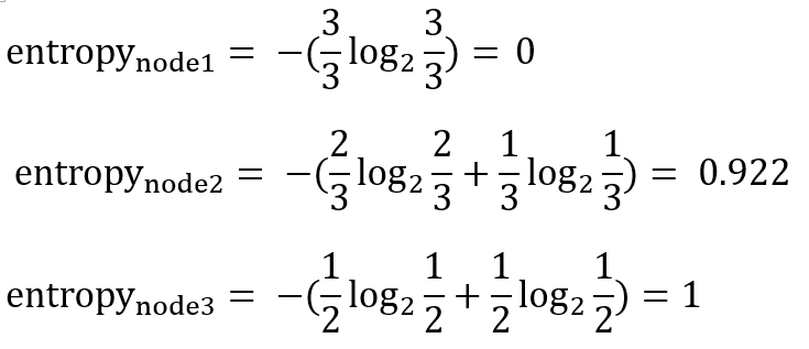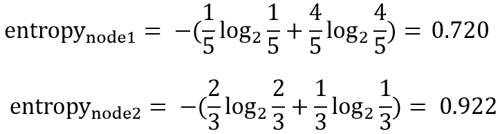 이에 대해 각 노드에 대한 entropy를 계산하면 다음과 같다.