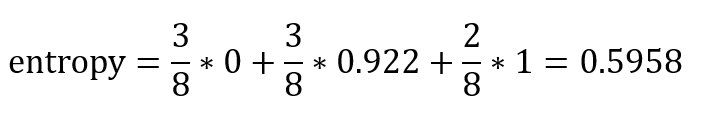 그러므로 해당 split에 대한 entropy를 계산하면 다음과 같다.