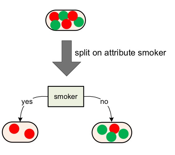 이를 특정 기준으로 나누면 각 나눠진 부분집합의 entropy를 현재보다 더 낮게 만들 수 있을 것이다.
