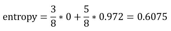 그러므로 이에 대한 information gain은 0.815 - 0.6075 = 0.2075이다.