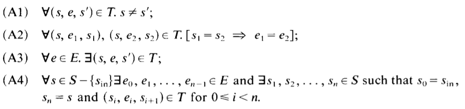 Transition system이 self-loop, 즉, 하나의 state에서 나가서 그 state로 다시 되돌아오는 event가 없어야한다.