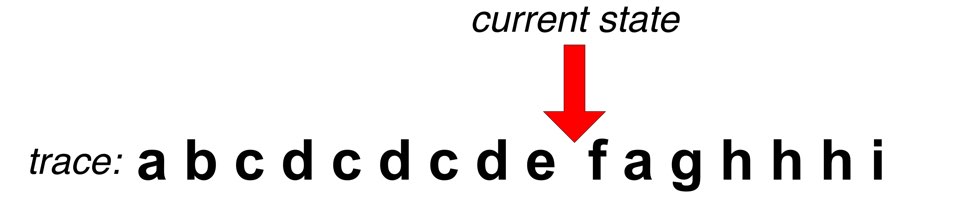 우선, state의 종류를 나누는 기준에는 Past, Future, 그리고 Past & Future이 있다. 다음과 같은 trace가 있고, 현재의 state가 화살표와 같다고 하자.