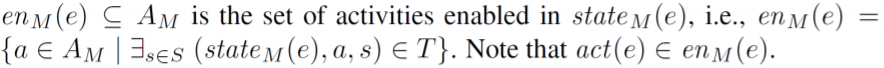 en_M은 이벤트 e가 모델 내에서 enable하는 액티비티들을 말하는 것으로, 다음과 같이 정의할 수 있다.