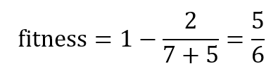 그리고 log move의 길이는 7, shortest path in model의 길이는 5 (<a,c,d,e,g>)이기 때문에 fitness를 계산하면 다음과 같다.