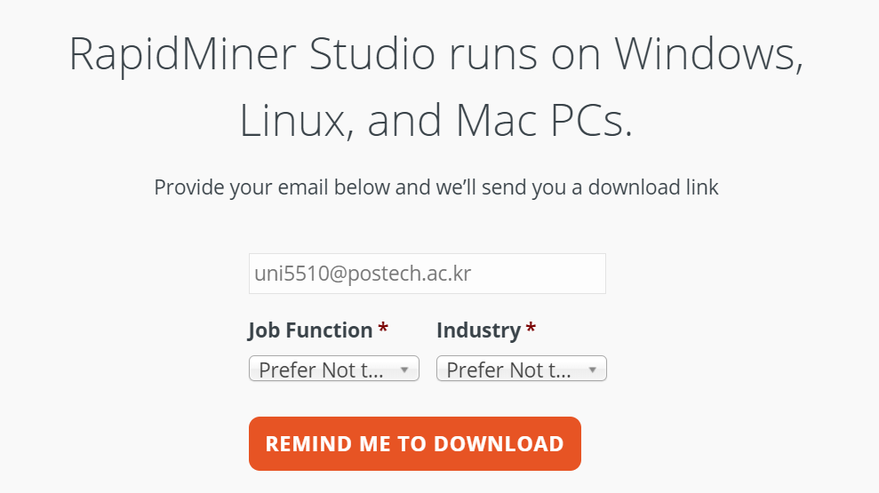 0-2. 이메일과 Job Function, Industry (Prefer Not to Say를 선택해도 무방하다.)를 입력하고 Remind Me to Download 버튼을 누른다.