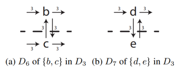 먼저 D3를 보자. D3에는 {b,c} / {d,e}에 XOR cut이 존재한다. 그리고 b와 c 사이에는 parallel cut이, d와 e 사이에는 loop cut이 존재한다. 이를 표현하면 다음과 같다.