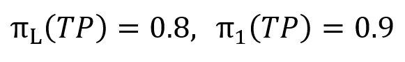 우선, 우리는 우리의 pi_L(TP) 값을 구할 수 있다. 이벤트 로그에서 <a, c, e>가 나오는 빈도를 계산하면 된다. 이는 16/20=0.8이다. 다음으로, 우리는 우리의 pi_1(TP) 값도 구할 수 있다. 우리의 descriptive model에서 <a, c, e>가 나올 수 있는 확률을 구하면 된다. 이는 0.9이다.